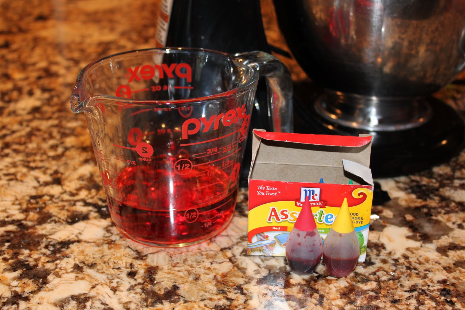 First to color your dough, just add red and yellow food coloring to your water before you add it to your dry ingredients.